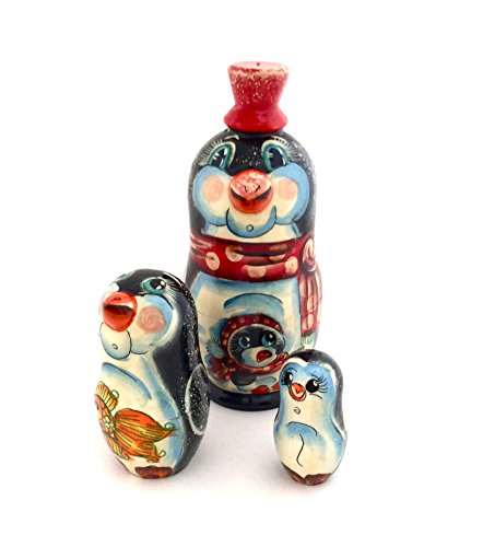 -. Title : Penguin Nesting dolls Russian Hand Carved Hand Painted 3 piece matryoshka Set