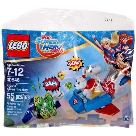 -. Feature : Swoop in with Krypto on his jet to fight the yellow Kryptomite and save the amethyst crystal fragment. Includes a jet stud shooter, jetpack, Krypto and a Kryptomite. Contains 55 L.E.G.O Pieces / L.E.G.O DC Super Hero Girls Krypto Saves the Day 30546 includes Krypto and Yellow Kryptomite / Ages 7-12 years