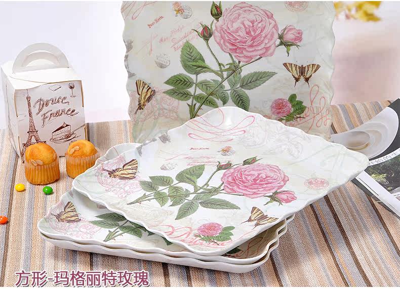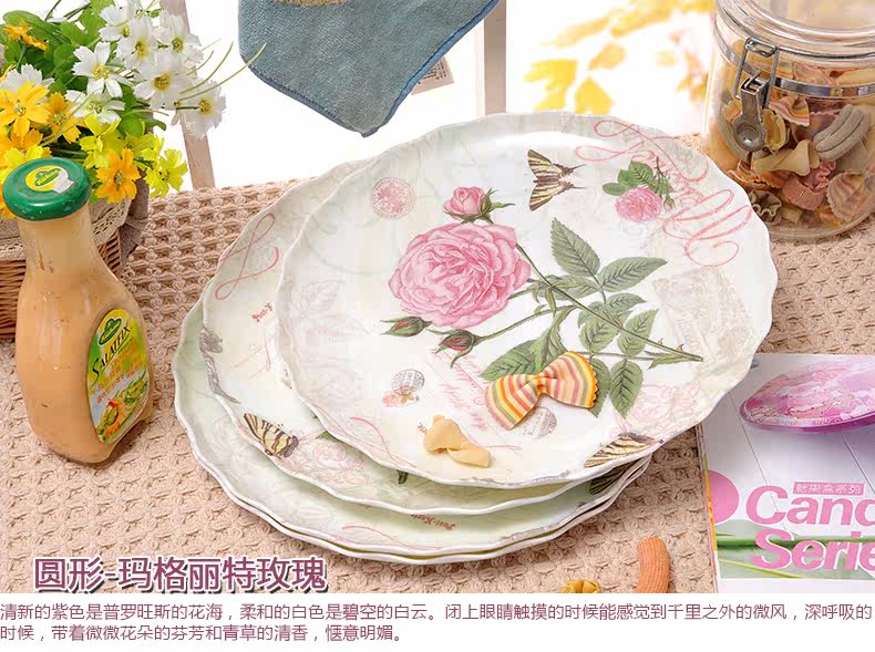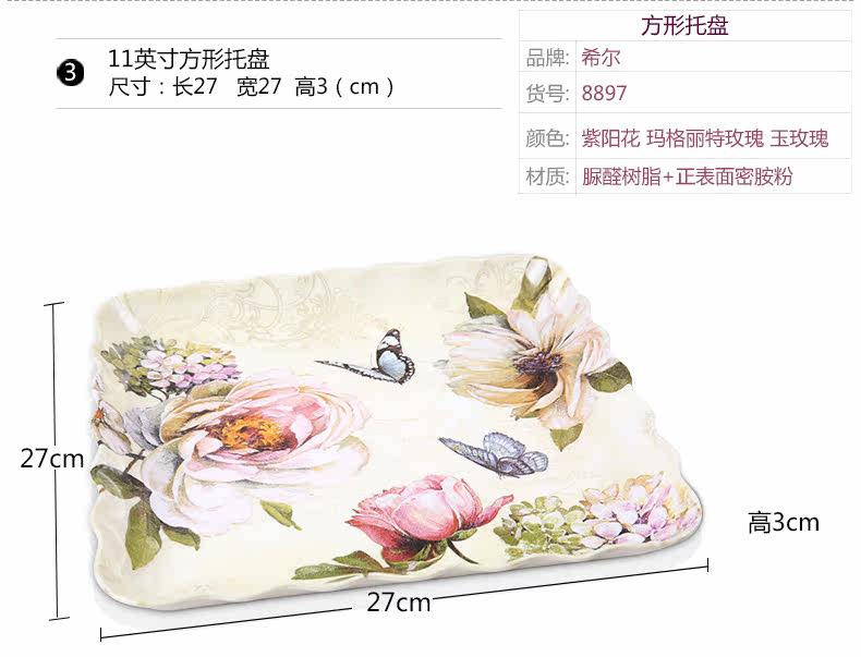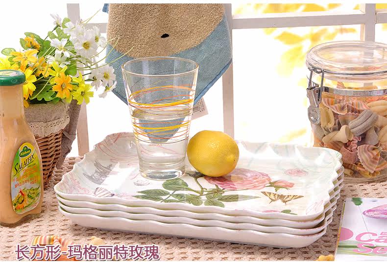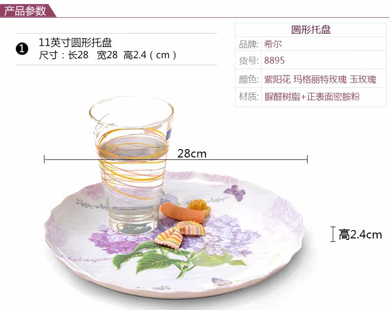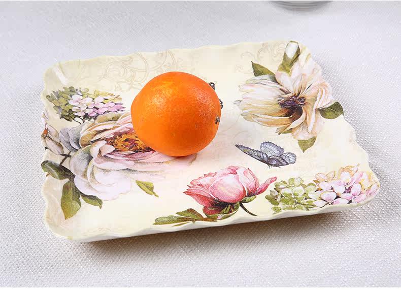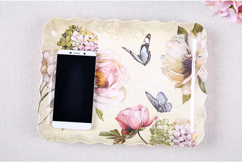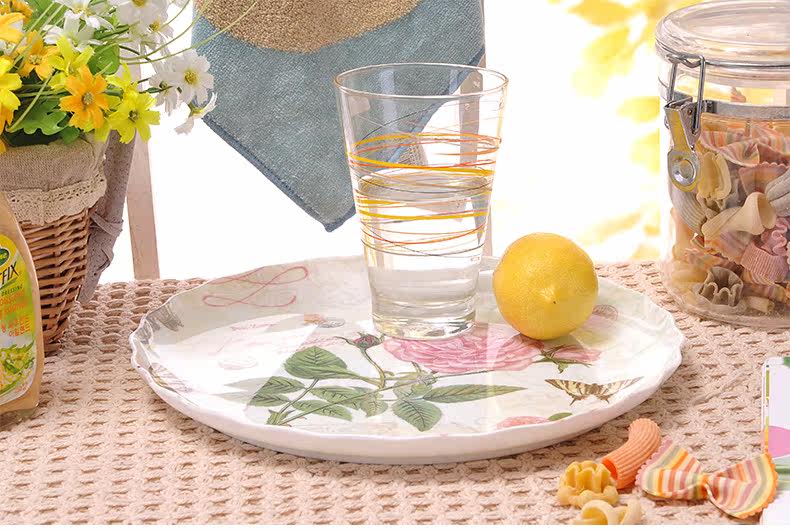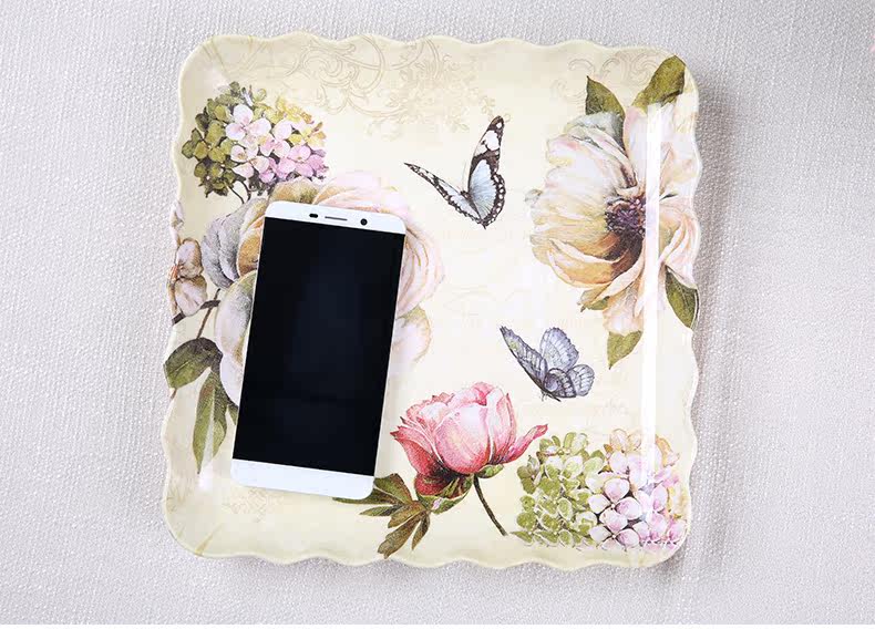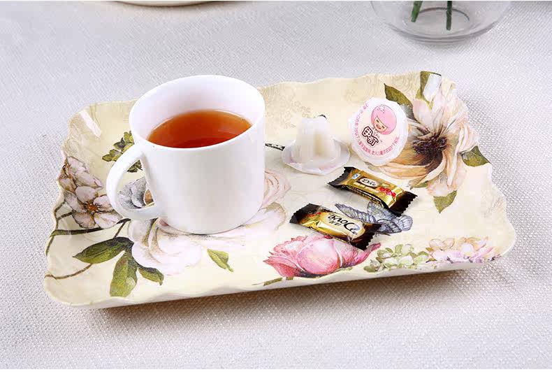 美耐皿欧式田园杯子托盘 花边零食盘时尚创意果盘