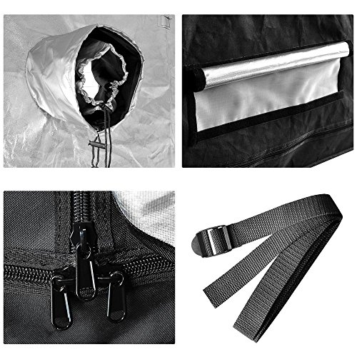 -. Feature : LAGarden™ 96"x48"x78" (Approx. 8x4x6.5Ft) Upgraded Grow Tent with Improved Reflective Interior Diamond Mylar. / All metal construction, 600D oxford cloth with exterior zippers design ensure safety use and essay set up. / Multiple vents to accommodate fans and filter. / Free Gift: 4 nylon belts for hanging the grow light & Extra removable waterproof mylar floor tray with belts / 100% lightproof environment.