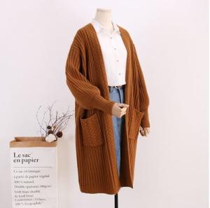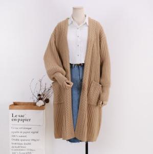 ケーブル編みがおしゃれで可愛いロング丈ニットカーディガン☆