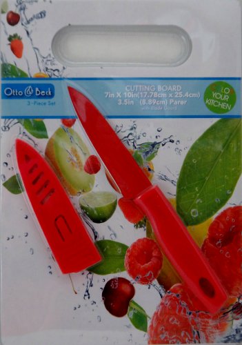 Otto & Beck 3 Piece Paring Knife and Cutting Board Set (Red)