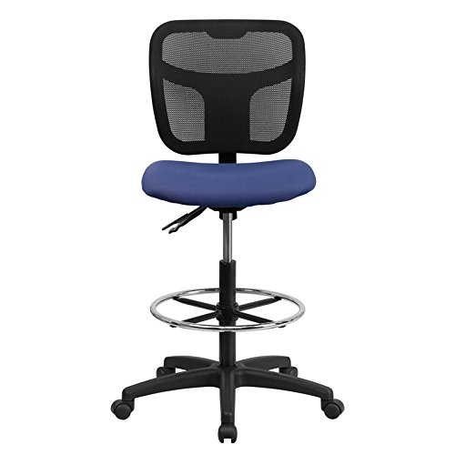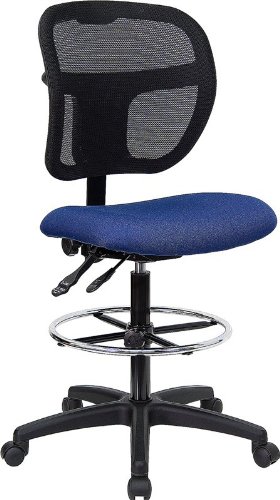 -. Title : Mid-Back Mesh Drafting Stool with 3" Thick Foam Padded Navy Blue Fabric Seat