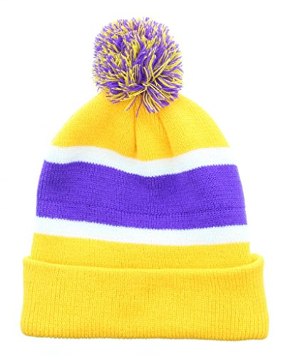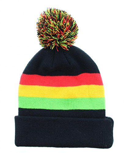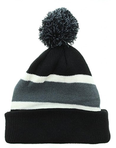 | Milani Winter Stripe Thick Pom Beanie with Cuff Skull Cap Hat |