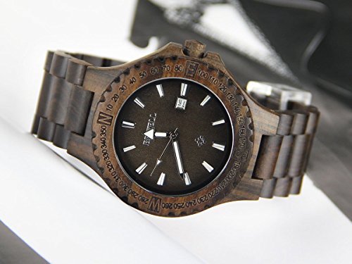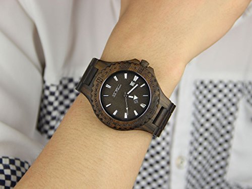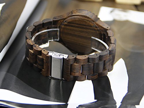 YF-WOOD 손목시계 유니섹스 목제 손목시계목의 온기 넘치는 안정된 세련된 손목시계 우드 워치 맨즈 레이디스 시계(흑단)