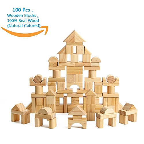 Title : CECII 100 Pcs Wooden Blocks Wood Building Block Set with Carrying Bag - 100% Real Wood(Natural Colored)