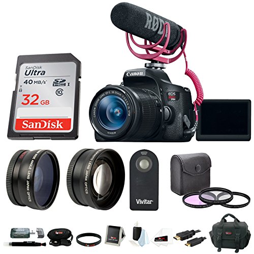 Includes: Canon T6i Video Creator Kit with 18-55mm Lens, Rode VIDEOMIC GO, 32GB SD Card, Canon SLR bag, Wide angel and Telephoto lenses, filter kit, remote control, and more!