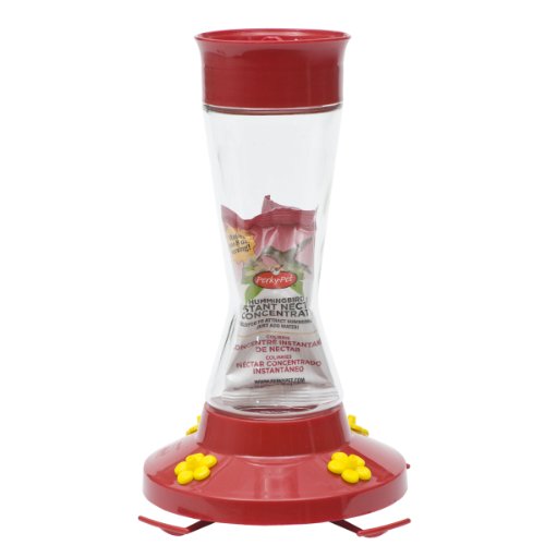 -. Binding : Lawn & Patio -. Brand : Perky-Pet -. Color : Clear -. EAN : 0078978210905 -. Feature : 16 ounce nectar capacity with easy to fill wide mouth opening / Base comes apart for easy cleaning / Built in bee guards protect nectar supply / Built in ant moat keeps ants away / Free instant nectar packet -. IsAutographed : 0 -. IsMemorabilia : 0 -. Label : Perky Pet -. Manufacturer : Perky Pet -. Model : 210PB -. MPN : 210PB -. NumberOfItems : 1 -. PackageQuantity : 1 -. PartNumber : 210PB -. ProductGroup : Lawn & Patio -. ProductTypeName : OUTDOOR_LIVING -. Publisher : Perky Pet -. Studio : Perky Pet -. Title : Perky-Pet 210PB Pinch Waist Glass Hummingbird Feeder with Free Nectar -. UPC : 078978210905 The Perky-Pet Pinch Waist Hummingbird Feeder has everything you need to attract hummingbirds to your yard. The 16 oz. nectar capacity holds just enough to make sure there's always fresh, clean nectar for your tiny hummingbirds. The wide mouth opening on the glass feeder bottle makes filling mess-free and cleaning simple. The built in bee guards on the 4 feeding ports protect the nectar supply and your hummingbirds from bees. The built in ant moat on the lid keeps ants away. Simply fill with water! This feeder comes with a free 1.3 oz. packet of instant nectar concentrate, which makes 8 oz. of nectar! The base of this feeder easily comes apart to clean. To prevent mold buildup, remember to clean your feeder twice a week with a mild soap and water solution.