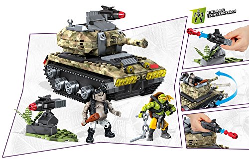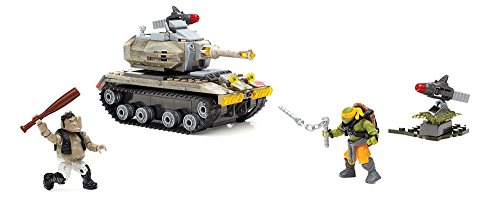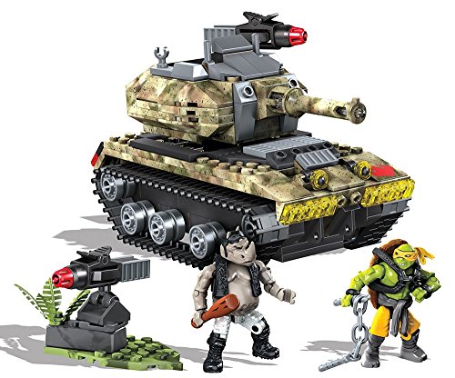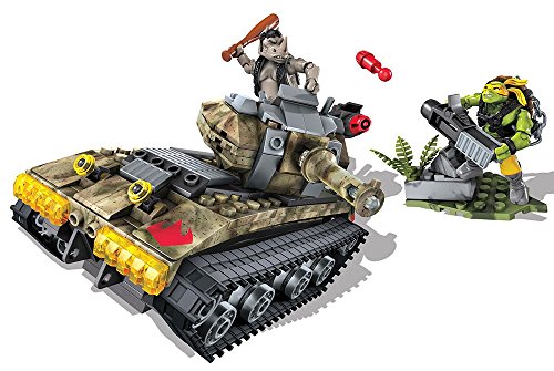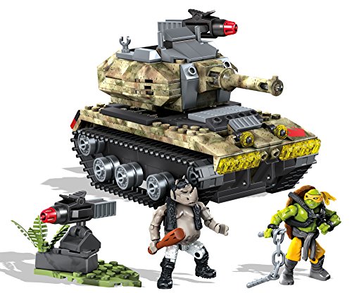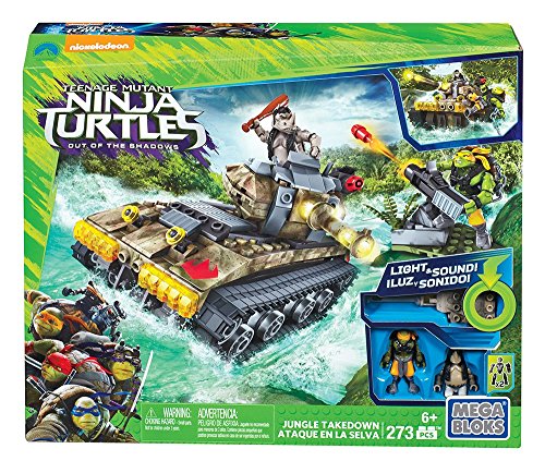 -. Binding : Toy -. Brand : Mega Bloks -. EAN : 0887961316001 -. Feature : It's rumble between mean and green / When Mikey goes into battle mode in a Jungle Takedown by Mega Bloks TMNT Movie / When Rocksteady rolls through the jungle in a heavy-duty tank, it's time for Mikey to shell out some justice and fight back with his launcher / Inspired by the TMNT Movie, the buildable battle tank features real lights and different sound effects for dynamic display / Mikey and Rocksteady micro action figures are highly detailed and feature a super-pose able design -. IsAdultProduct : 0 -. ItemPartNumber : DPF81 -. Label : Mattel -. Manufacturer : Mattel -. Model : DPF81 -. MPN : DPF81 -. PackageQuantity : 1 -. PartNumber : DPF81 -. ProductGroup : Toy -. ProductTypeName : TOYS_AND_GAMES -. Publisher : Mattel -. ReleaseDate : 2016-04-10 -. Studio : Mattel -. Title : Mega Bloks Teenage Mutant Ninja Turtles Jungle Takedown Set -. UPC : 887961316001 -. Warranty : 1 year warranty against manufacturer defects