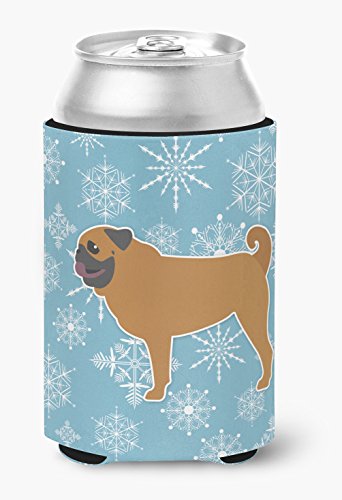 Caroline's Treasures Winter Snowflake Pug Can or Bottle Hugger BB3547CC, Can Hugger, Multicolor