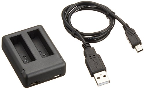 -. Feature : 純正、互換バッテリーどちらも充電できます。2台同時充電可能 / 入力 microUSB(スマートフォン用端子) miniUSBの2系統 / 出力 1台充電、2台充電ともに800mAh / 充電中は赤ランプが点灯します。