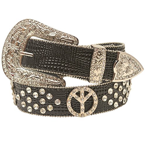 Studio : HOT FASHION Publisher : HOT FASHION Binding : Apparel Product Description Trendy belt from Hot Fashion, perfect accessory for womens wear. This belt comes in black with crocodile skin pattern and glitter stud embellishment and peace sign detail. Sparkle textured buckled closure. Western belt will surely highlight your personal style and beauty. 0