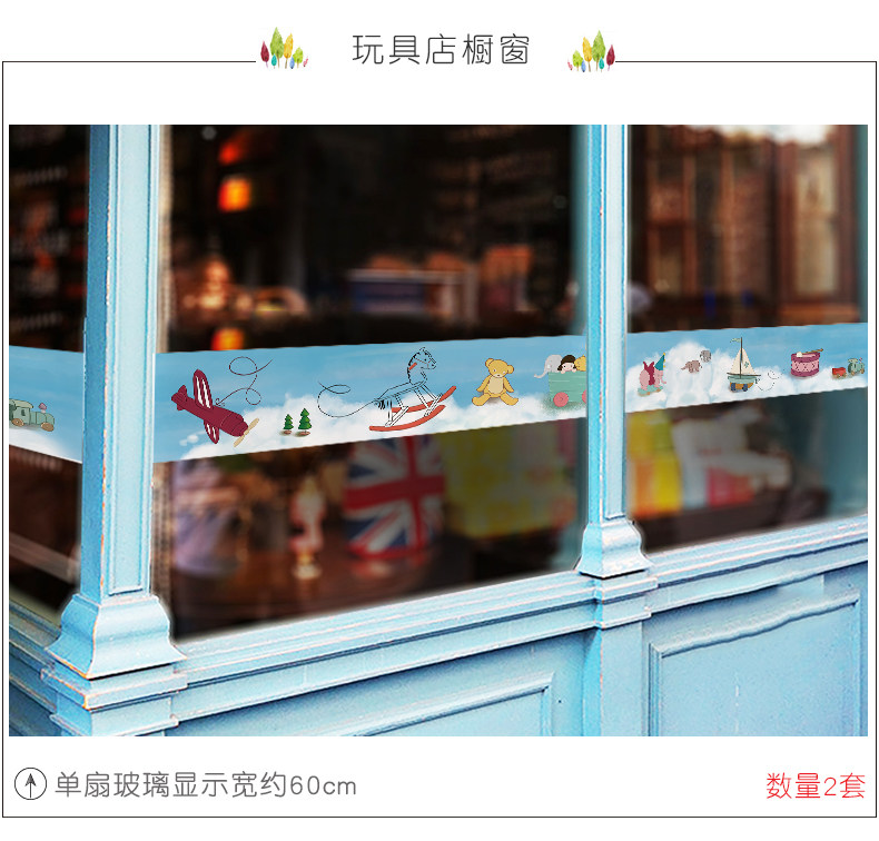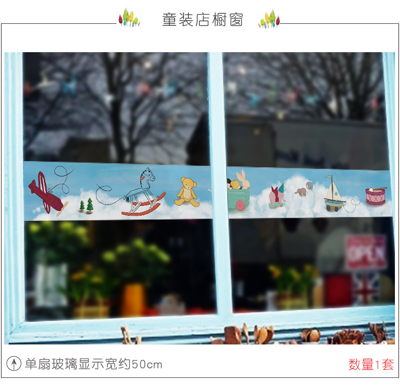 漫步云端腰线橱窗装饰儿童房门浴室卫生间厕所窗户环保可移除贴纸