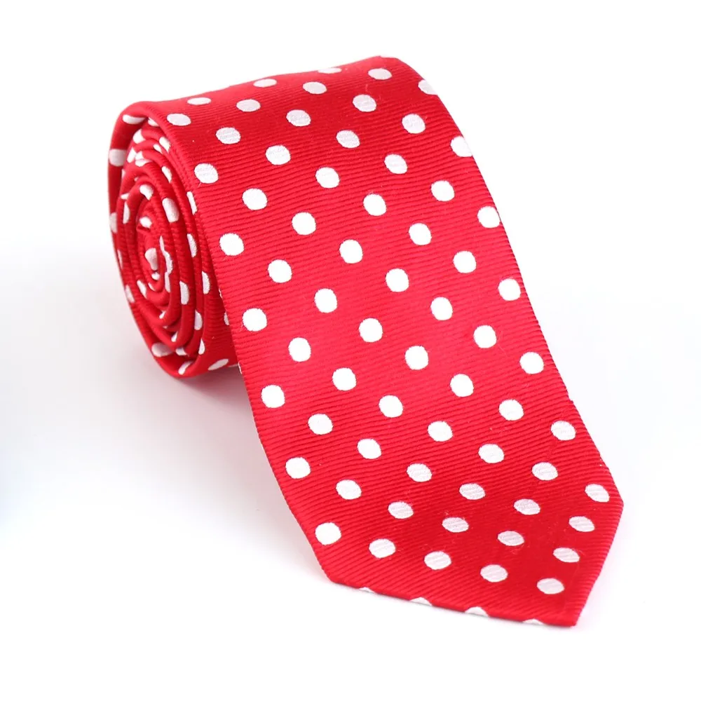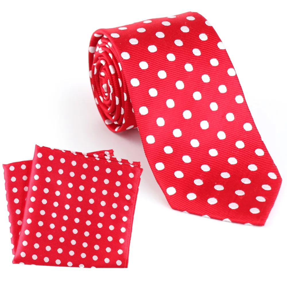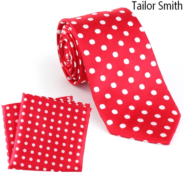 | [해외]재단사 스미스 천연 순수 실크 화이트 폴카 빨간 넥타이 손수건 세트 남성 정장 비즈니스 웨딩 정장 드레스 넥타이 포켓 광장 |