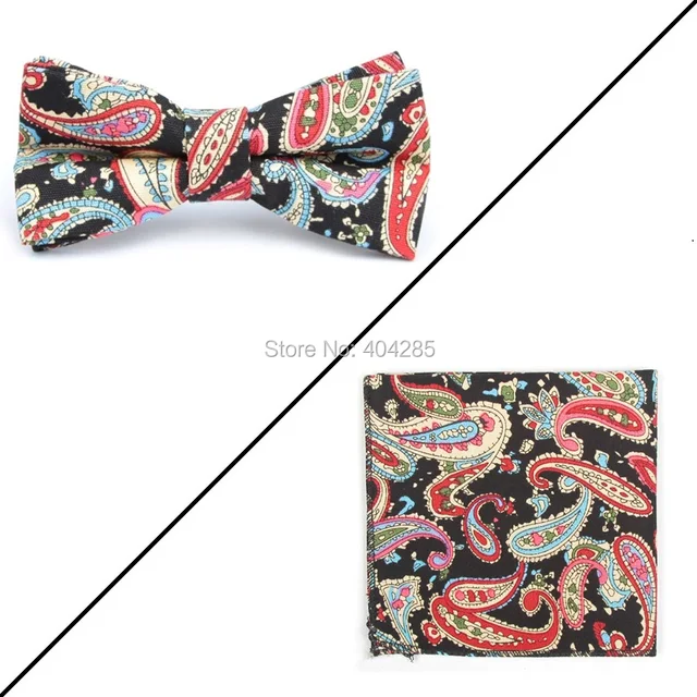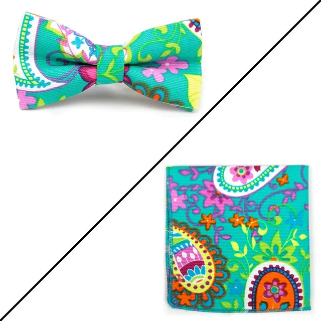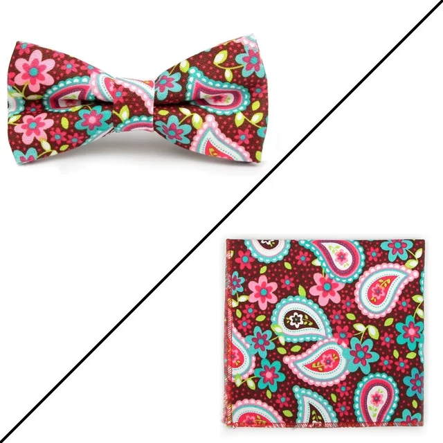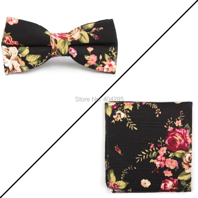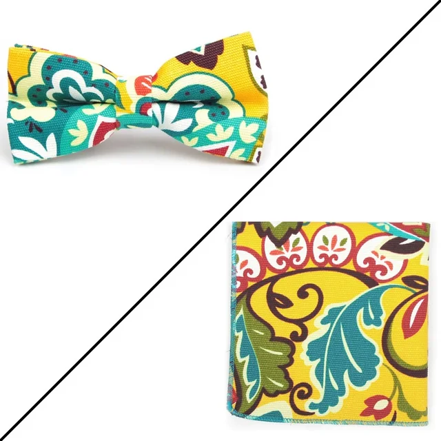 | [해외]나비 넥타이 세트 꽃 인쇄 패션 나비 넥타이 남성 포켓 스퀘어 |