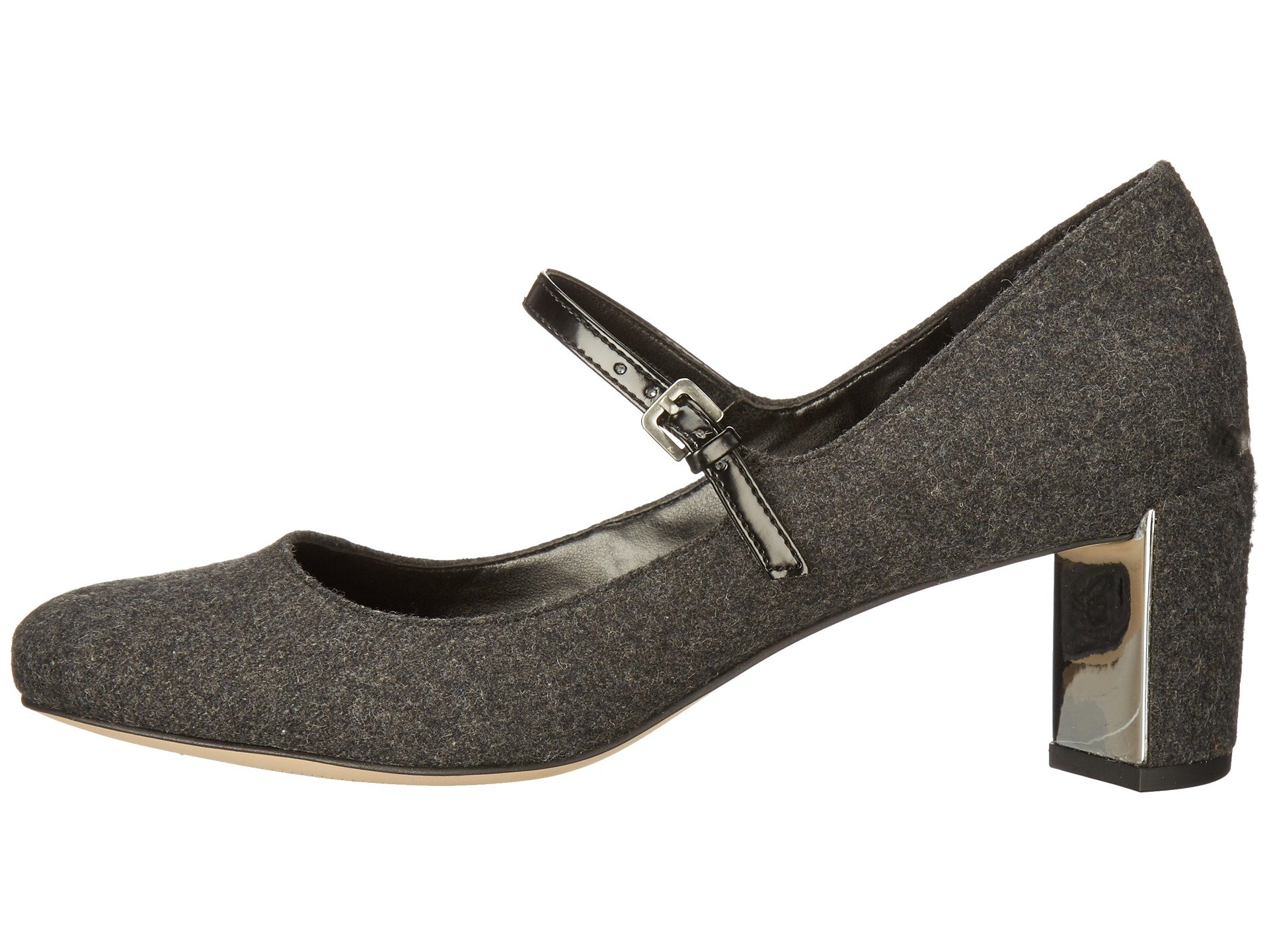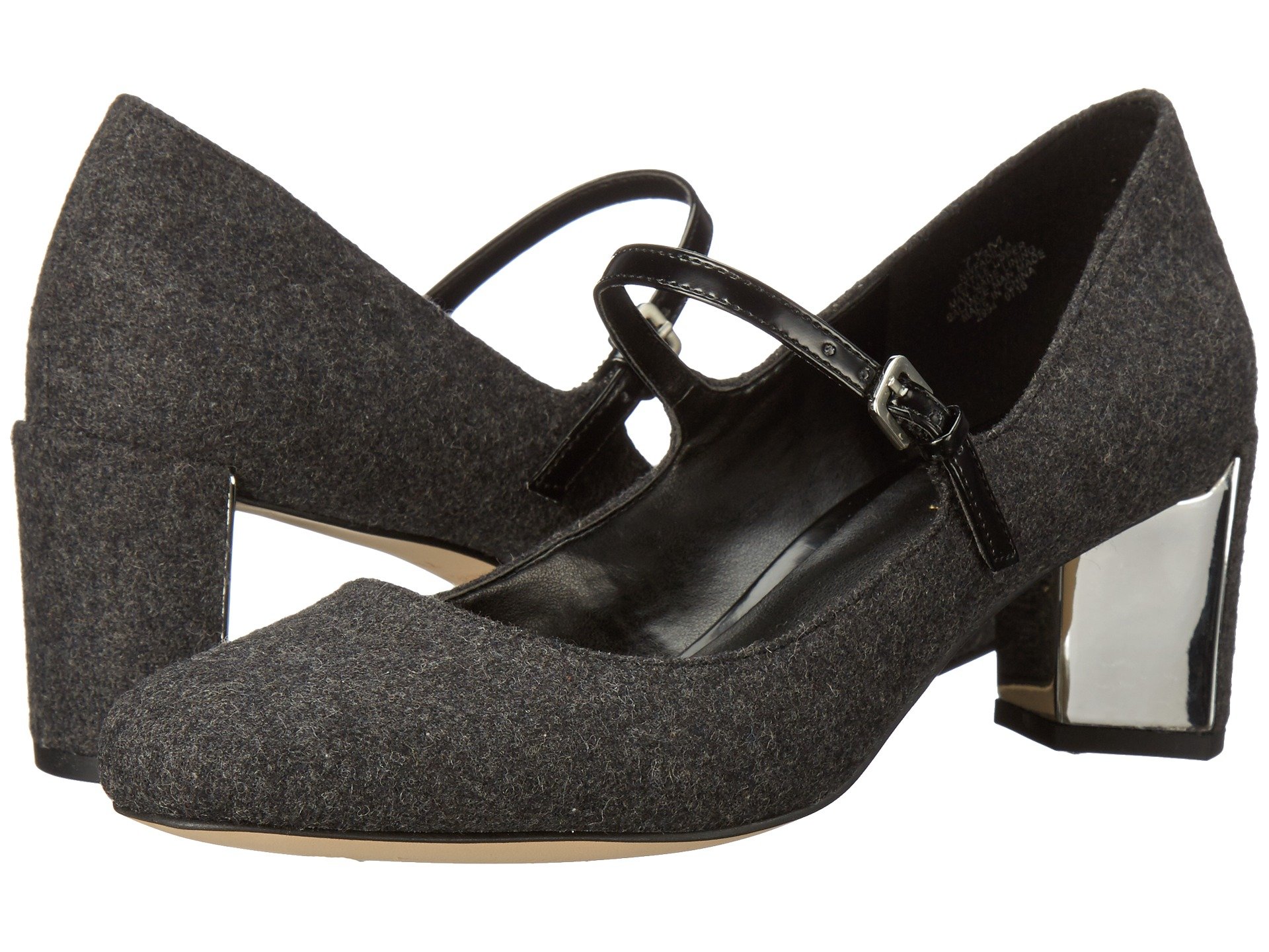 | Product Information SKU: #8780764This Nine West? Mary Jane pump has enough style to make all the onlookers blush.Fabric upper.Adjustable buckle closure.Almond toe.Man-made lining.Lightly-padded footbed. Wrapped heel with metallic covering on instep.Synthetic outsole.Imported. Product measurements were taken using size 9, width M. Please note that measurements may vary by size.Weight of footwear is based on a single item, not a pair.Measurements: Heel Height: 2 1?4 in Weight: 8 oz |