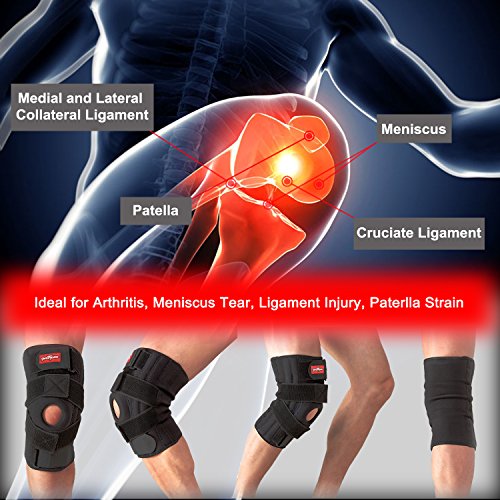 -. Feature : ★Stability-Support-Compression-Alignment-Healing : This product has advanced support features for stability to prevent and heal moderate to major ligament sprains, muscle strains and unstable joints. / ★Soft and Breathable : A soft Lycra fabric provides sweat free and cool comfort while a durable anti-pilling material makes the outside more breathable and durable. / ★Ultra-Protection : Adjustable double-crossed straps can assist damaged cruciate ligaments, supporting the ligament to maintain stability of the knee pads to reduce the chance of sports injuries. / ★Patella Support : The knee brace uses a EVA cushioning gasket to completely protect the patella, with openings placed to relieve pressure, avoiding patella displacement caused by inapproP.R.Iate force. / ★Elastin Support : An additional built-in sP.R.Ing can bend in any direction to provide extra knee support and shock-absorbing without interfering with knee movement at all!