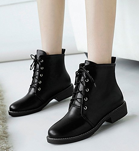 Binding : Apparel Product Description Winter is coming! Do you want a pair of boots both of fashion and warm? This pair of snow boots is a perfect choice. This lovely shoes features lace up closure and round toe. With their pu leather design, you will look more elegant and cute. The sole is made of good rubber. You will feel comfy in their soft bottom. The heels measure 1.2 inches. You will feel comfortable in their low heels. Its flats style is solid. So you will not feel tired even walking all day long. They are of high quality and durable. Just pick them to show your beauty. 0