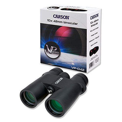 Der VP-042 von Carson Optical ist ein voller Größe 10x42mm Fernglas. Diese Ferngläser verfügen über BAK-4-Prismen und voll mehrfach vergütete Optiken für gestochen scharfe, klare Sicht. Darüber hinaus sind die VP-042 10x42mm Fernglas Phase beschichtet, waterproog und Nebel Beweis. Die VP-Serie Ferngläser sind die ideale Wahl für die Jagd, Vogelbeobachtung, Wandern oder Angeln. Quality-Ferngläser für einen großen Wert!. Carson Optical Vp Series Full Sized Waterproof And Fogproof Binoculars (Black, 10X42-Mm). 10x Magnification & 42mm Objective Lens Diameter. Fully Multi-Coated & Phase Coated. BAK-4 Prisms | No Fault Warranty. Waterproof and Fogproof. Field of View: 330 ft. at 1,000 yards | Minimum Focus Distance: 6.6 feet | Eye Relief: 15mm. Camping Hiking Mountaineering binocularSports Outdoors Sporting Goods Products.Feature