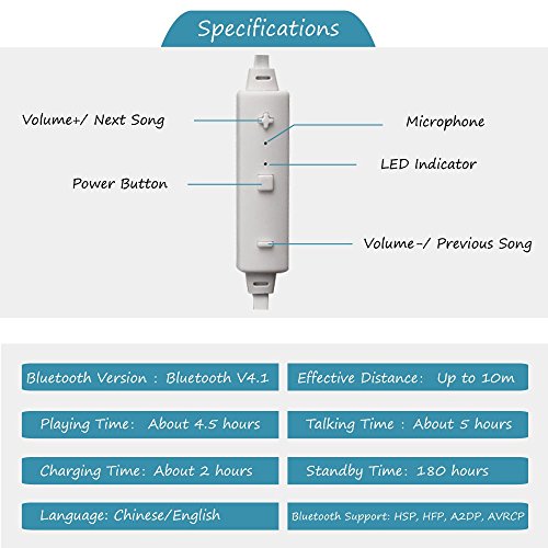APT-X Codec for HD sound. Bluetooth V4.1 with CVC6.0 Noise Reduction function to ensure high-fidelity stereo music sound and clear speech within 10 meters.