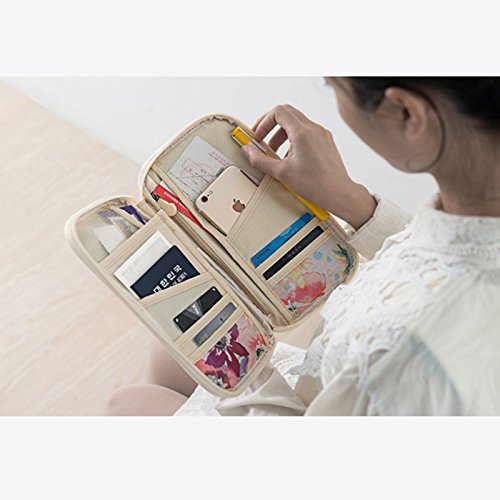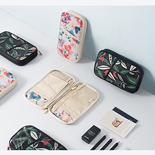 MagicFeel Floral Print Women Travel Zipper Pouch Passport Holder Document Credit Card Holders B...