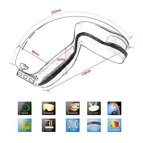 X.A 스키 고글 스노우보드 드 고글 스노우 고글 오토바이용 더블 렌즈 안경을 쓰고 대응 헬멧가 UV컷 UV400 흐림금지 내충격 방진 방풍 anti그레아 남녀 겸용 고글