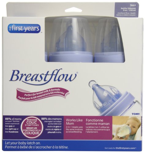 -. Binding : Baby Product -. Brand : The First Years -. Feature : 5 ounce bottles, 3 pack / Bisphenol BPA free / Double nipple system requires both suction and compression / Baby controls the flow of milk / Ideal for nursing moms who would like to introduce the bottle -. Label : The First Years -. Manufacturer : The First Years -. Model : Breastflow Bishenol Free Bottle PARENT -. ProductGroup : Baby Product -. ProductTypeName : BABY_PRODUCT -. Publisher : The First Years -. Studio : The First Years -. Title : The First Years Breastflow BPA Free Bottle 3-Pack
