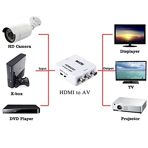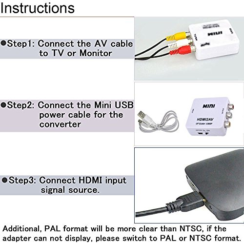 Transmission: Simply plug standard composite AV cables (yellow, red, white) into the input, output an HDMI cable from the converter to your TV etc
