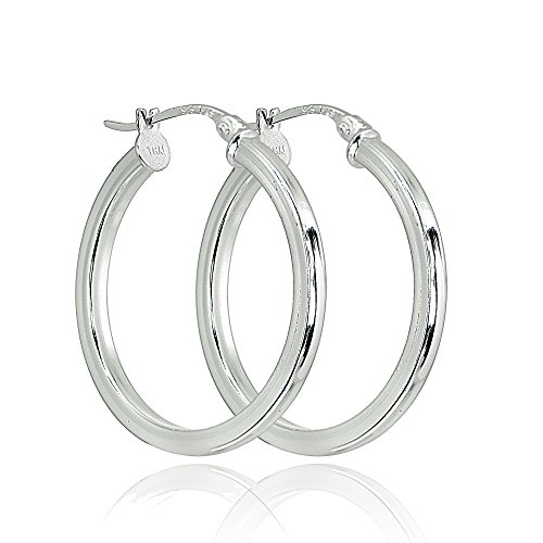 Made of 925 sterling silver, nickel free. Hoops have a high polished finish with click-top closures.