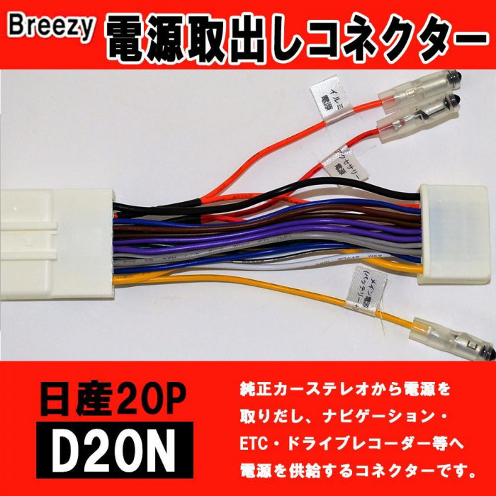 純正カーステレオから電源を取り出し、ナビゲーション・ETC・ドライブレコーダー等へ電源を供給するコネクターです。 |