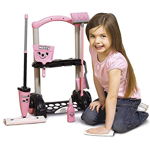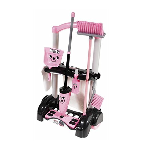 Studio : Casdon Publisher : Casdon Binding : Toy Product Description Hetty Cleaning Trolley Play Set. Little ones adore role play and pretending that they are doing jobs around the house - just like the grown-ups! This Hetty Cleaning Trolley has been specially designed to be true to life, right down to the last detail so your little helper will really feel part of your world while developing essential life skills. Provides a stylish trolley to carry the latest Hetty simulated mop, with fabric floor cloth which can be removed and attached by a child using the traditional finger push fit method. Supplied with long handle brush, dust pan and hand brush, simulated detergent bottle, and paper debris container. Realistic role play for exploring imagination and developing social skills Friendly Hetty character and bright colours for visual stimulation Play encourages the development of hand-to-eye co-ordination Variety of activities that promote the understanding of cause and effect Multiple parts and accessories develop problem solving and motor skills Different modes of play encourage exploration and discovery Moving trolley encourages mobility and a sense of independent play Materials: Plastic. Dimensions: 14.96"L x 7.87"W x 24.41"H; Weight: 2.22 lbs 0
