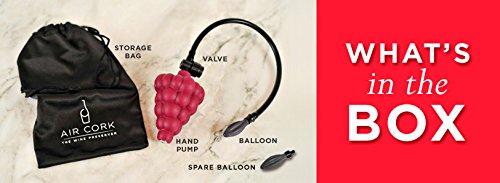 -. Brand : Air Cork -. Color : Burgundy -. EAN : 0850014003241 -. Feature : Air Cork Wine Preserver - includes Air Cork device, storage pouch, instructions and spare balloon. / Protects wine from oxidation for 3-4 days. Balloon will NOT alter or affect the taste of wine. / To Use: Lower balloon into bottle until at wine, squeeze the bulb pump to inflate the balloon and watch it create an air tight seal from within the bottle. / Designed for standard size bottles only: For use in 750-ml size bottles. Not for carbonated beverages. / Balloons should last 80+ uses and are easily replaceable. -. Label : Air Cork -. Manufacturer : Air Cork -. Model : AC11 -. MPN : AC11 -. PackageQuantity : 1 -. PartNumber : AC11 -. ProductGroup : Kitchen -. ProductTypeName : KITCHEN -. Publisher : Air Cork -. Studio : Air Cork -. Title : Air Cork Wine Preserver (with spare balloon) - as seen on Shark Tank -. UPC : 850014003241 -. Warranty : Balloons are guaranteed for 80+ uses.