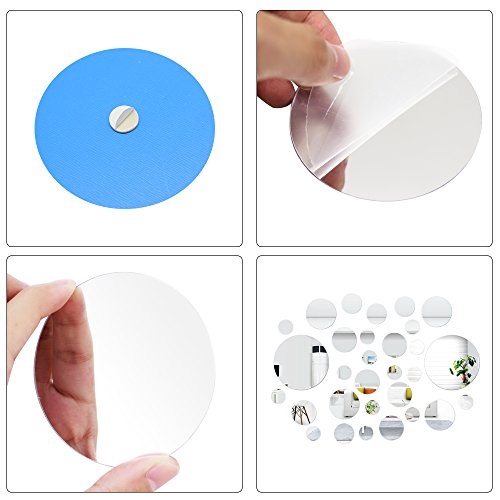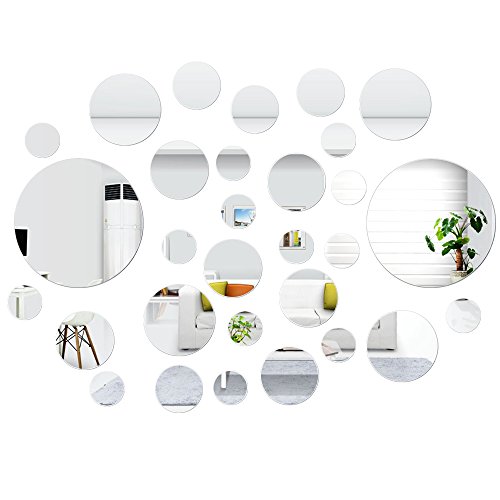 SelfTek 30 Pieces Mirror Wall Stickers Round Self Adhesive Wall Stickers DIY Home Decoration