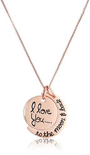 A simple way to say I love you, the Sterling Silver I Love You To the Moon And Back Two Piece Pendant Necklace is a wonderful gift for all. Resting from a classic 18-inch necklace is a round-shaped pendant formed out of a separate half-moon and oval shape. While the oval-shaped pendant says I love you the half-moon shape is wrapped with the engraving to the moon and back. This pendant is crafted in 925 sterling silver to present fun and meaningful shine.Feature