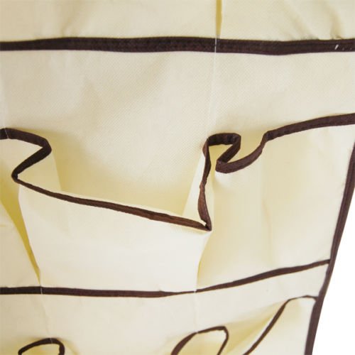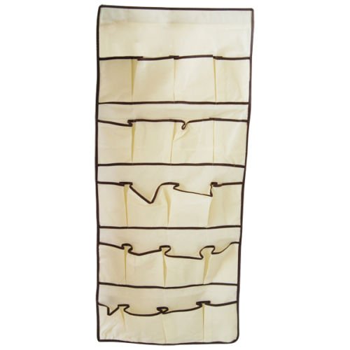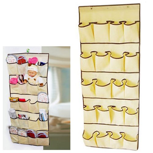 -. Feature : This tidy cloth organizer provides a great solution to your small items at home / Make odds and ends such as newspaper, socks, toys, etc in perfect order and handy / With 20 pockets, it can save you a lot of space. / No need for screwing or drilling. / Made of premium cloth,Color: buff.