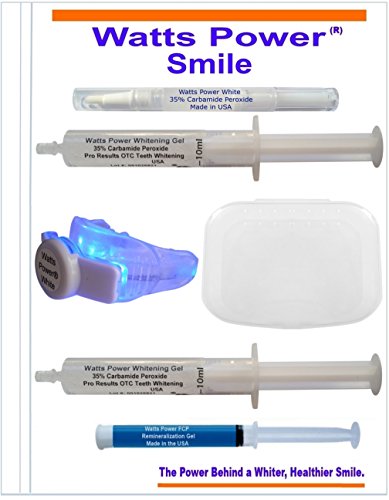 -. Feature : COMPLETE WHITENING KIT - Everything Is Included In This Premium Kit To Save You Both Time and Money - So Yes, It Is Time To Smile, Smile, Smile. / BONUS BRUSH TIP PEN Plus 2 Large 10ml Gels for Easy Applications And Year Round and Touch Ups - Go Ahead, Exercise, Read or Shower While Using This Kit. / OPTIMIZED 15 MINUTE WHITENING FORMULA for Quick Results with Little or No Sensitivity - Gels Can Also Be Used While Brushing for a 2 Minute Touch Up. / REUSABLE SOFT DUAL TRAY Disconnects from Light for Sanitary Clean Up With Soap & Water / TRUSTED WATTS POWER BRAND - All Watts Power Teeth Whitening Gels Are P.R.Inted With Active Ingredient and USA Origin - It's Going in Your Mouth, Why Risk Using Unmarked Gels
