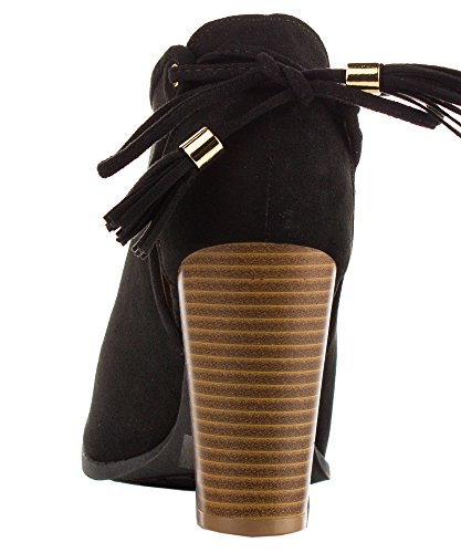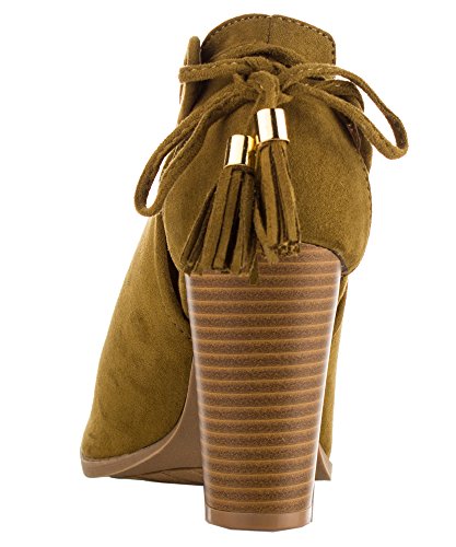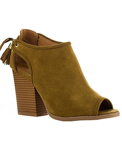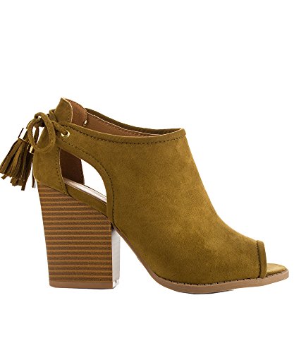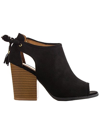 Product Description These booties feature a peep toe silhouette, side cutout design with tassel lace tie closure, and stacked block heel. Finished with a cushioned insole for all day comfort. 0