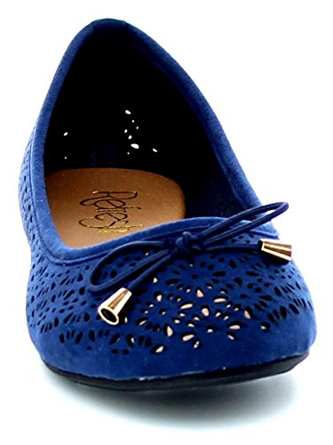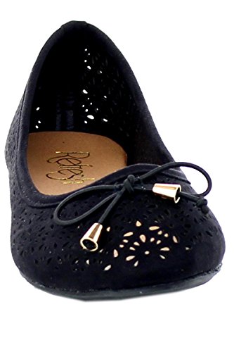 Product DescriptionRefresh Footwear Women's sueded ballet flat features laser-cut detail with bow at round toe. Easy slip-on design low heel. Imported.0