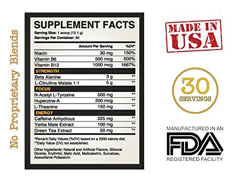 Produces Results: Immediate increases in strength & power, boosted blood flow to the muscle for pumps & vascularity, laser focus and lasting mental clarity, sustained energy without a major crash.