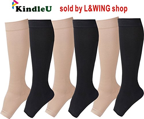 ◆KindleU is the licenced trademark exclusively owned by L&WING and only sold by L&WING store. If you buy from other store, we can not sure the quality. WIDE-RANGE BENEFITS: KindleU toe open compression socks increase and stimulates blood flow, working as a circulation booster. Swift and faster recovery from a hard marathon or a long flight. Clinical effectiveness in managing edema and DVT. Unisex Compression stocking use to prevent cramping muscles. Feel confident starting your everyday routine.