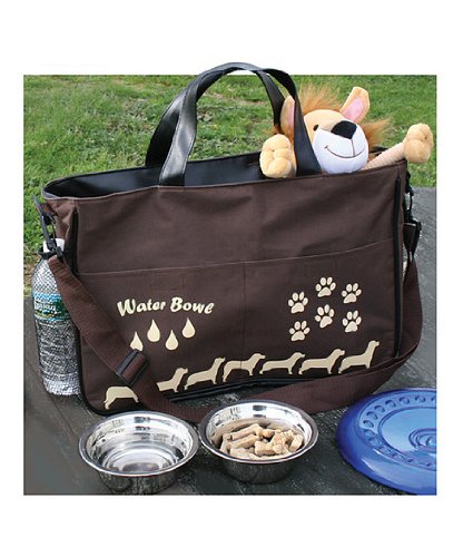 Studio : Etna Publisher : Etna Binding : Misc. Product Description Pet Travel Tote Bowl Set From the Manufacturer: Every good pet parent needs a good pet travel system. Perfect for trips to the park or even across the country, this durable tote boasts a roomy interior with a secure zipper closure, a mesh pocket for an extra bottle, four large exterior compartments and an adjustable shoulder strap for easy carrying. Two stainless steel bowls fit snugly into the versatile bag for on-the-go sips and chow. 0