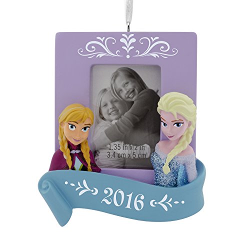 -. Feature : Boxed Christmas tree ornament by Hallmark. / On frame: 2016 / Characters on frame: Anna and Elsa / Satin ribbon hanger. / Perfect gift for fans of Frozen, Elsa and Anna.