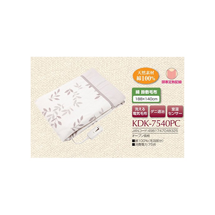 원본상품명: KOIZUMI(コイズミ) 【プレオガニックコットン】綿100% 電掛敷毛布 188×140cm KDK7540PC