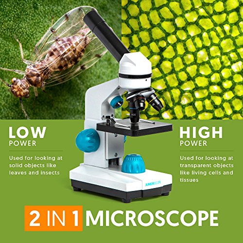 The new Omano JuniorScope is the perfect microscope for your young scientist. This gift will have them put down their phone and perk up their interest in nature. The JuniorScope is a high quality, easy to use microscope built with kids in mind. With the JuniorScope your kids can look at everything from plant cells to water bears. Unlike other children's microscopes, the JuniorScope has precision glass optics, is easy to use and gives a crystal clear image of what's on the slide. To top it off the JuniorScope is two microscopes in one. You get a low power microscope for looking at solid objects like leaves and insects and a high power microscope for looking at transparent objects like living cells and tissues with 40x, 100x and 400x magnification levels. The JuniorScope is solid and well built. Unlike other microscopes on the market that look, feel, and perform like toys the JuniorScope provides a quality design, clear images, and a great experience. Our EZ focus knobs let your kid get the crystal clear image they want. And, the battery powered LED light lets them go wherever the adventure takes them. The JuniorScope comes fully inspected, prepped, batteries installed, and ready to use out of the box. You also get a kit of accessories which includes 5 prepared and 5 blank slides, stains, lens cleaner and more. The Omano JuniorScope is the perfect gift for sparking a lifelong love of science and exploration. Buy it now and start their journey today.