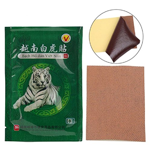 -. Feature : Brand New & High quality. 1. Suitable for rheumatism, rheumatoid arthritis 2. Could be used for osteoproliferation, cervical spondylosis, scapulohumeral periarthritis, lumbar disc herniation, sciatica 3. Also suit for strain of lumbar muscles, gout, radiohumeral bursitis, joint sprain, etc. Item Type: Tiger Balm Plaster Quantity: 8pcs/bag Store: Place it in cool place
