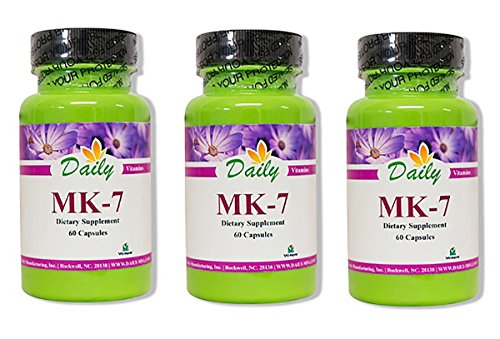 -. Binding : Health and Beauty -. Brand : Daily Manufacturing -. EAN : 0650899330551 -. Feature : Dietary Supplement / Vitamin K2 200mcg -. IsAdultProduct : 0 -. Label : Daily Manufacturing -. LegalDisclaimer : These statements have not been evaluated by the Food and Drug Administration. These products are not intended to diagnose, treat, cure or prevent any disease. If you are pregnant, nursing, taking medication, or have a medical condition, consult your health care professional before using any of these products. -. Manufacturer : Daily Manufacturing -. MPN : none -. PackageQuantity : 3 -. PartNumber : none -. ProductGroup : Health and Beauty -. ProductTypeName : HEALTH_PERSONAL_CARE -. Publisher : Daily Manufacturing -. Studio : Daily Manufacturing -. Title : Daily Manufacturing MK-7, 60 Capsules 3 Pack -. UPC : 650899330551