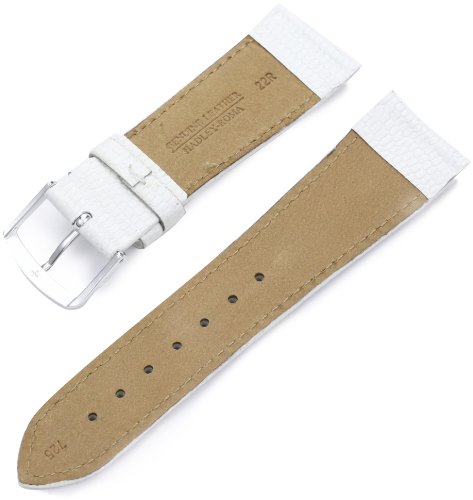 Studio : Hadley-Roma Publisher : Hadley-Roma Binding : Watch Amazon.com This is one of our Hottest selling styled bands. The construction is Remborde with a 3mm medium padding and matching colored stitching. The Top materials are Genuine Leather embossed with a Java Lizard Pebble Grain to resemble a natural skin. The Lining is a Genuine Nubuck Suede Leather that is Water-Resistant. The Buckle is a Hypo-Allergenic Aluminum Buckle in White Color . The width is 22mm at the Lug end where it attaches to the watch and tapers to a 18mm Buckle end. The length is 105x65mm which is the Regular length for ladies and has seven holes on the long section to adjust for proper fitting . The Color is Pure White. 0