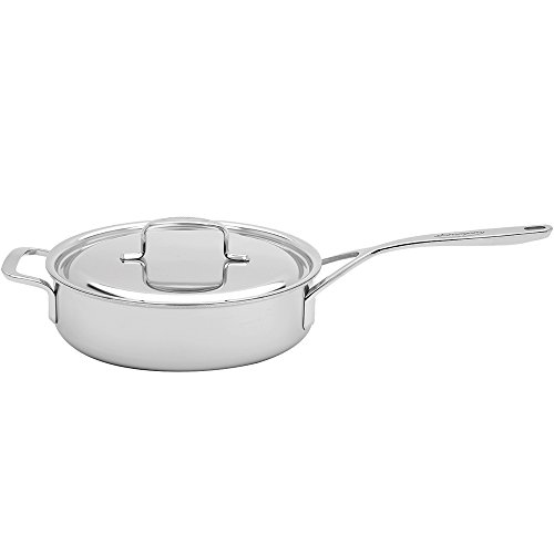 Produced in Belgium, Demeyere 5-Plus cookware is constructed of five layers: an 18/10 stainless-steel interior that won't react with foods, three layers of fast-heating aluminum and a magnetic stainless-steel base that's compatible with induction burners. Pans heat up quickly, distribute heat evenly and retain it well for perfect searing, browning and frying. Unlike other cookware on the market, these pans have a flat, stable base that won't bulge when heated, ensuring even cooking. Ergonomic handles stay cool on the stovetop, tight-fitting lids promote energy-efficient cooking, and rolled rims prevent spills when pouring. The cookware is oven and broiler safe to 500F (260C).Feature