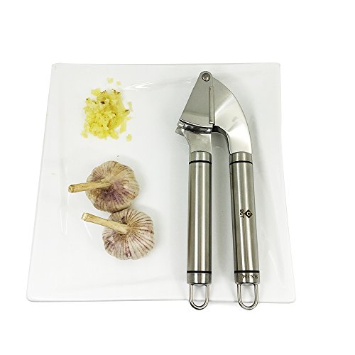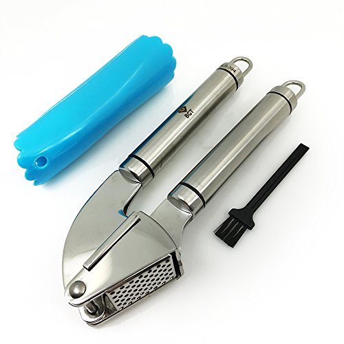 BGT Garlic Press Stainless Steel Garlic Ginger Mincer Chopper With Silicone Peeler And Cleaning Brush