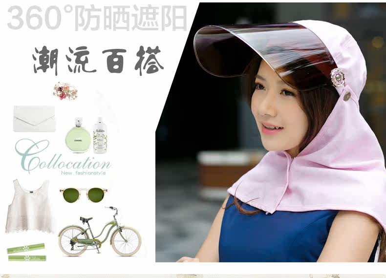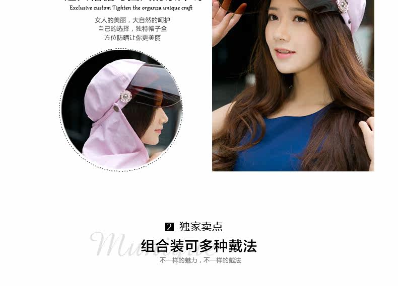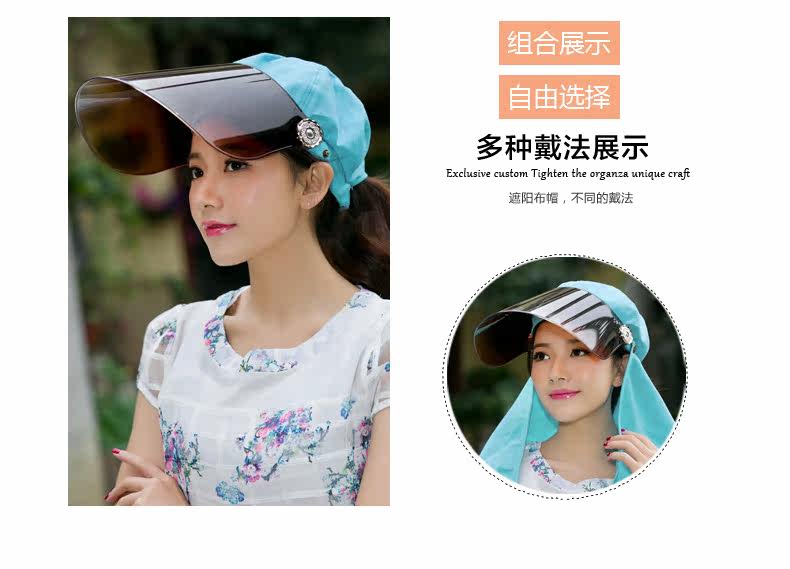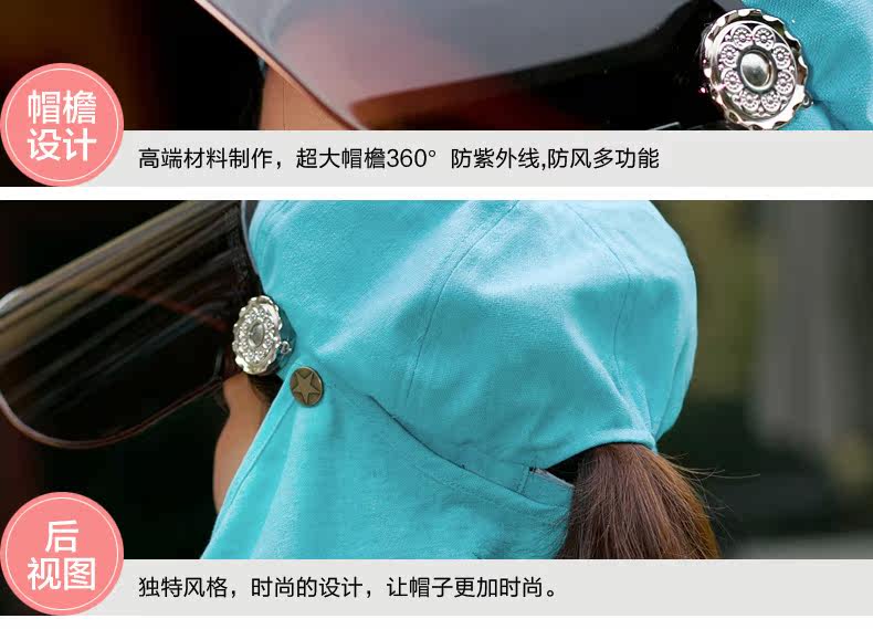 帽子女遮脸太阳帽防晒户外护颈帽夏天骑车遮阳帽防紫外线帽子凉帽